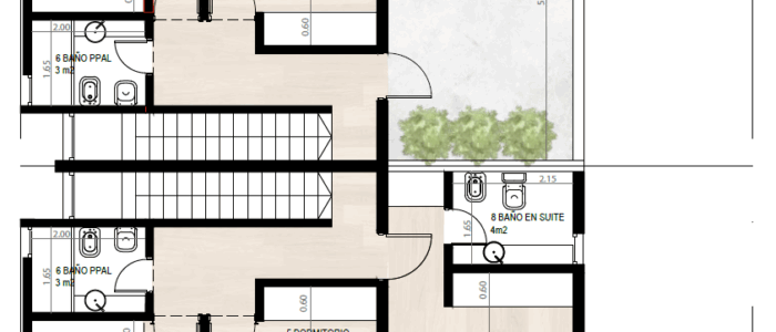 El proyecto cuenta con dos tipologías que se componen de 14 casas privadas de dos plantas con jardín y cochera
